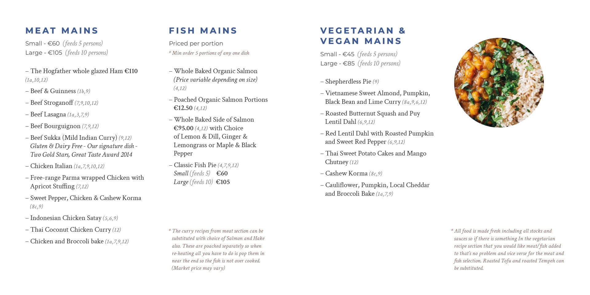Our Christmas Catering Menu will be available later in the year. Our 2022 menu is below.